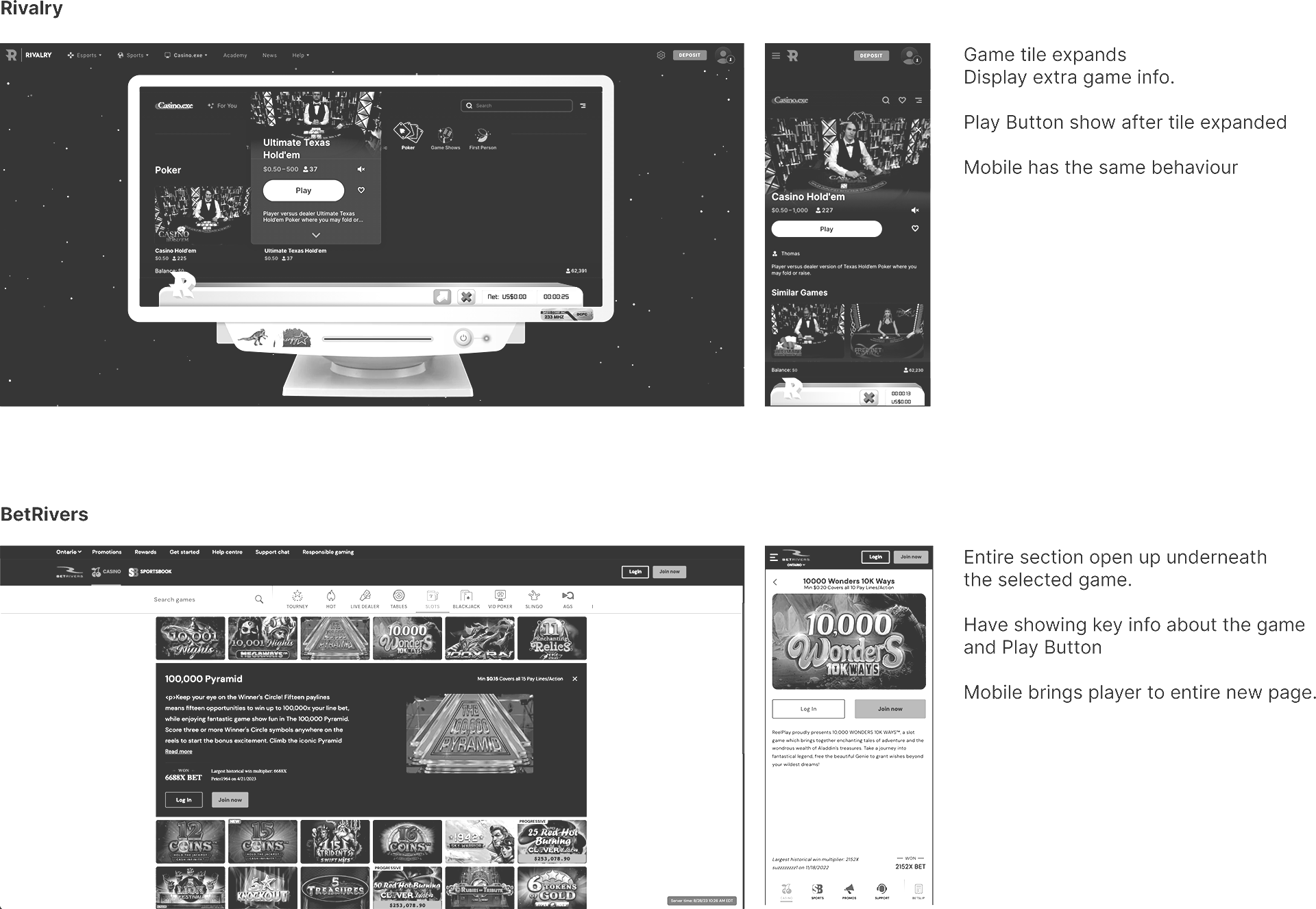 I analyzed how other online casinos design their game tiles, user experiences, and interfaces to identify best practices. Understanding industry trends helped refine my approach, making my design more user-friendly, engaging, and efficient.