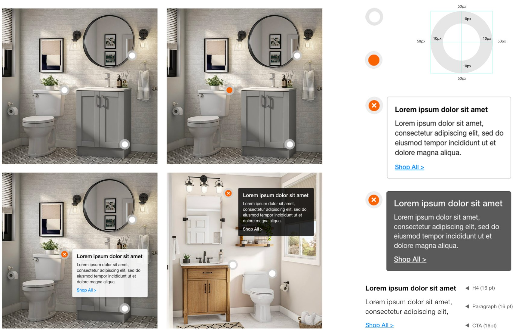 Tool tips will solve the problem of having text on images. It will guide customers to a specific product or landing page in order to provide our customers a better online experience.