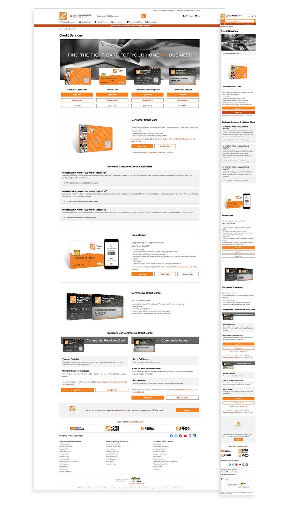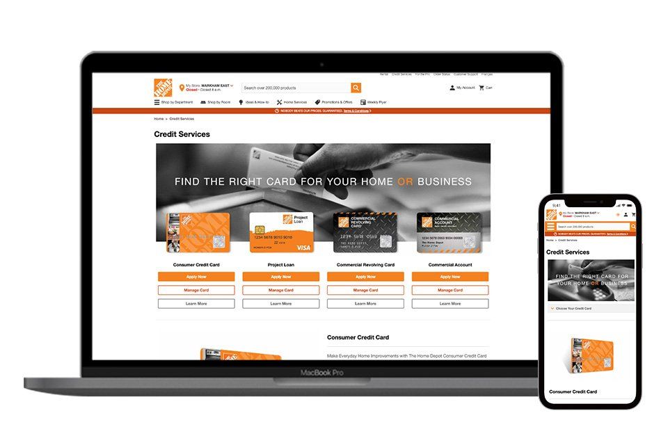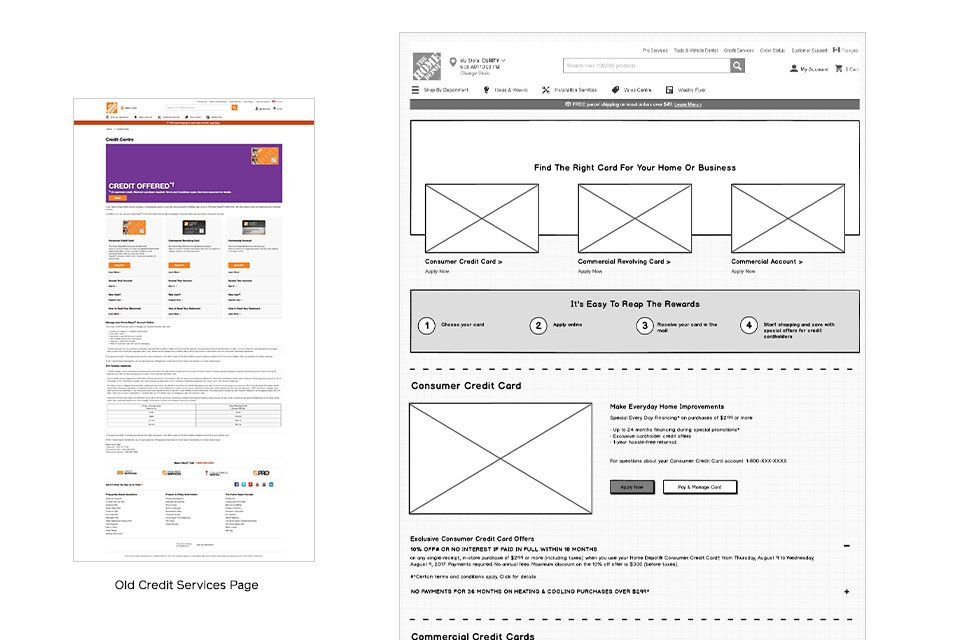 Re-design Home Depot credit services page with responsive layout and better user experience