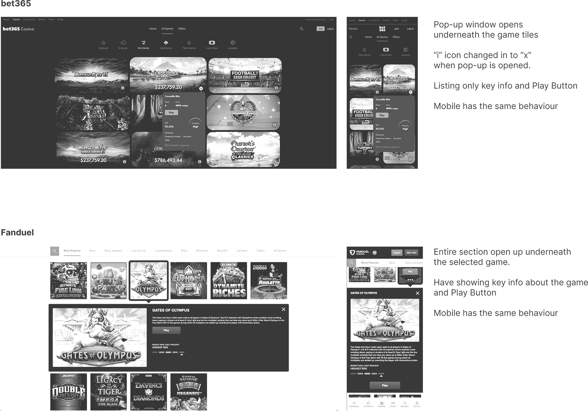 I analyzed how other online casinos design their game tiles, user experiences, and interfaces to identify best practices. Understanding industry trends helped refine my approach, making my design more user-friendly, engaging, and efficient.